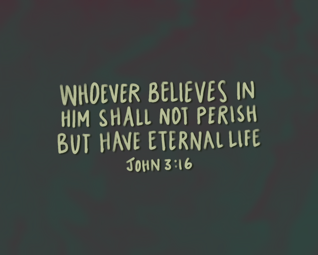 For God so loved the world that he gave his one and only Son, that whoever believes in him shall not perish but have eternal life. John 3:16